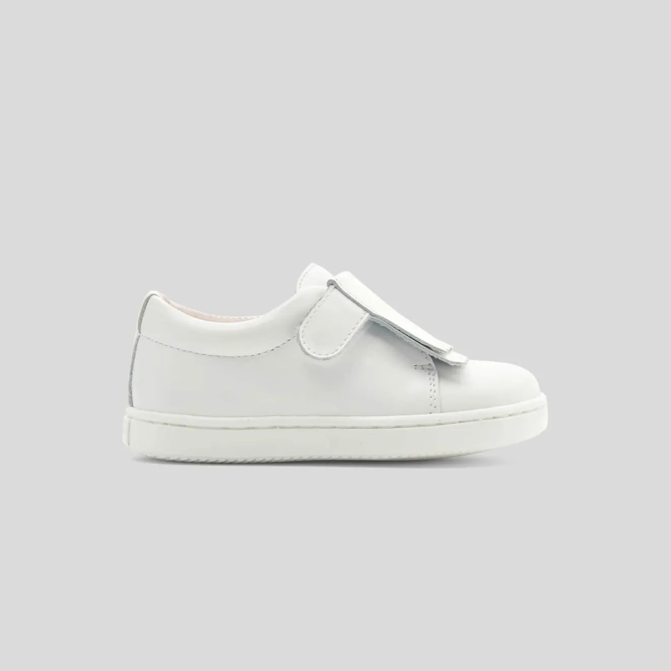 Déclinées en cuir lisse, ces tennis bébé fille sont accessoirisées d’une patte frangée. Faciles à enfiler grâce à leur ouverture par bride velcro, elles s’accorderont joliment à une combinaison ou un bloomer.
