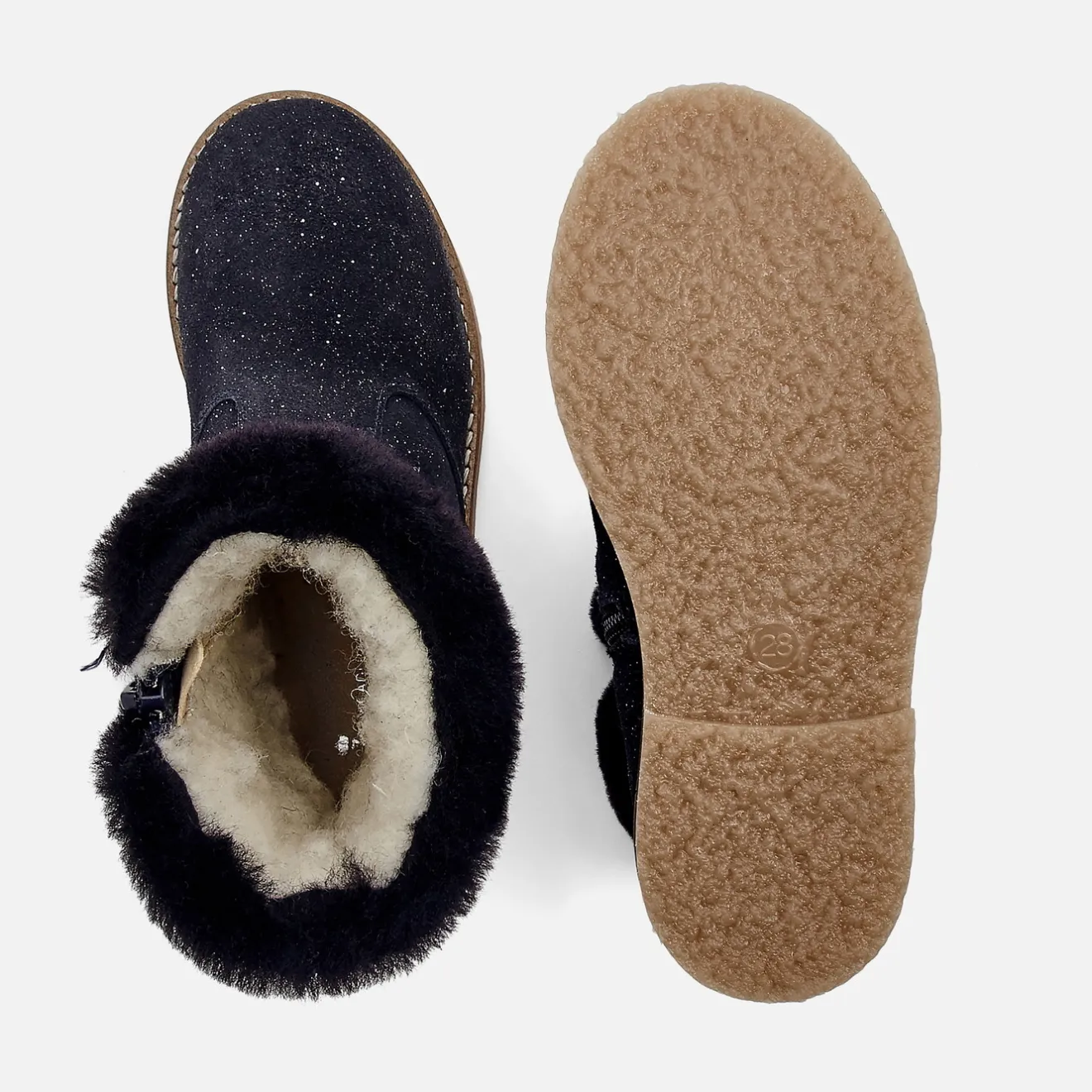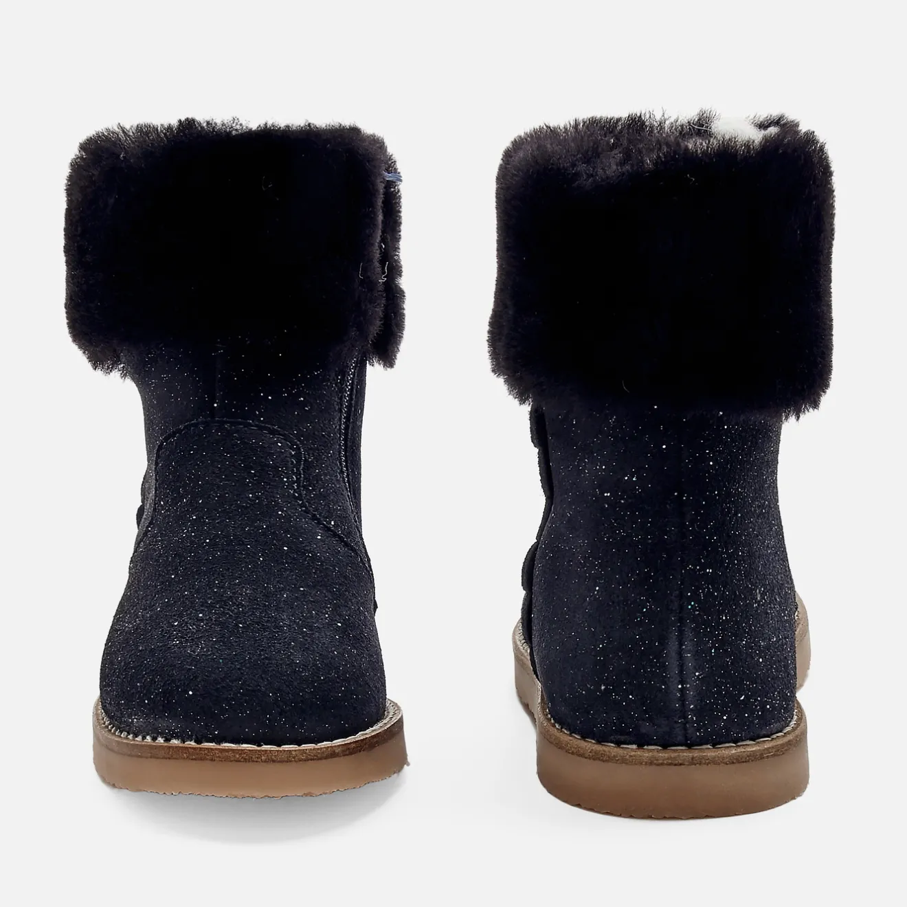 Cet hiver les boots des filles se portent version fourrée pour tenir bien chaud aux pieds. Taillées pour affronter les premiers frimas hivernaux avec leur doublure et leur col en mouton lainé, leur croûte de cuir robuste est animée de discrètes paillettes. Faciles à enfiler grâce à leur zip sur le côté, les petites filles aimeront les accorder à un pantalon ou une robe et des collants chauds.