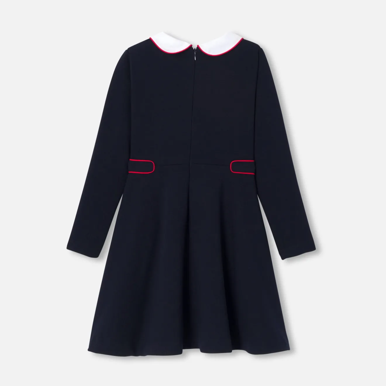 – Passepoil rouge à la taille façon ceinture