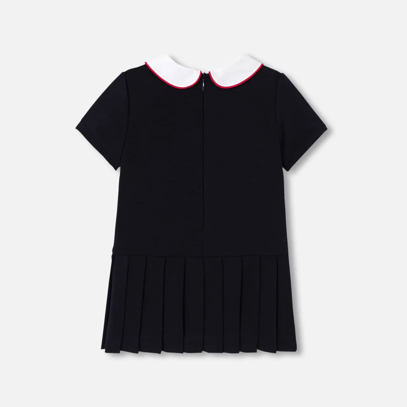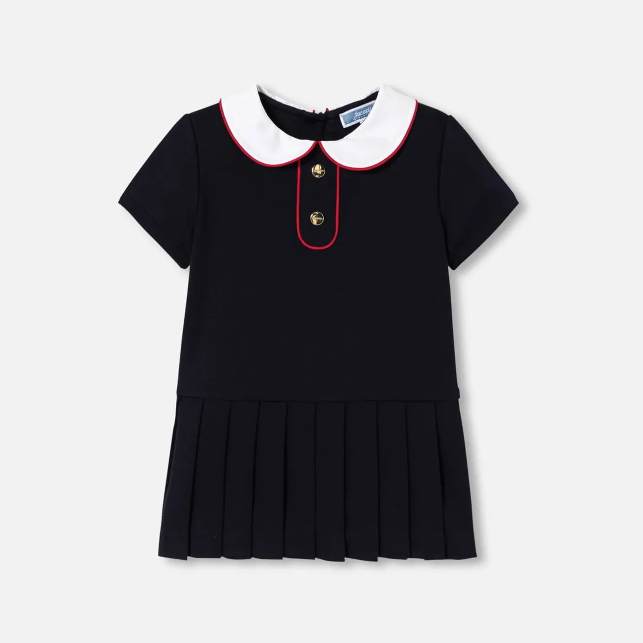 – Détails de biais contrastés au col et sur les pattes boutonnées