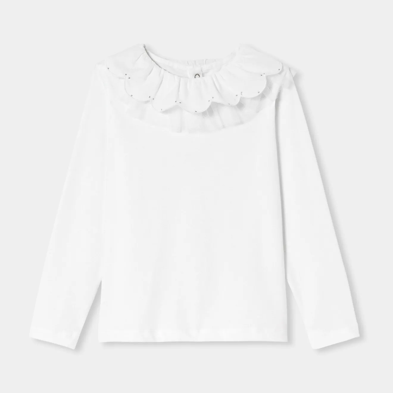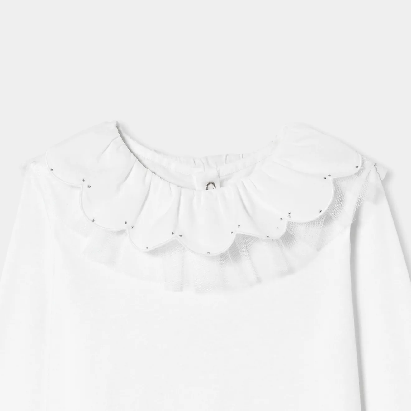 – Empiècement en tulle froncé amovible à l’encolure