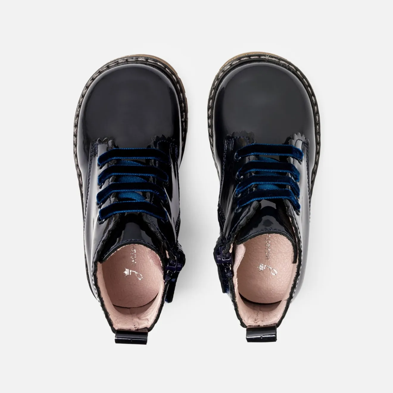 Inspirés du vestiaire anglais avec leur semelle crantée pour un caractère affirmé, ces bottillons bébé fille sont modernisés par un cuir verni marine ou rose pop. Faciles à enfiler, accordez-les à une blouse et un short en velours pour la rentrée.