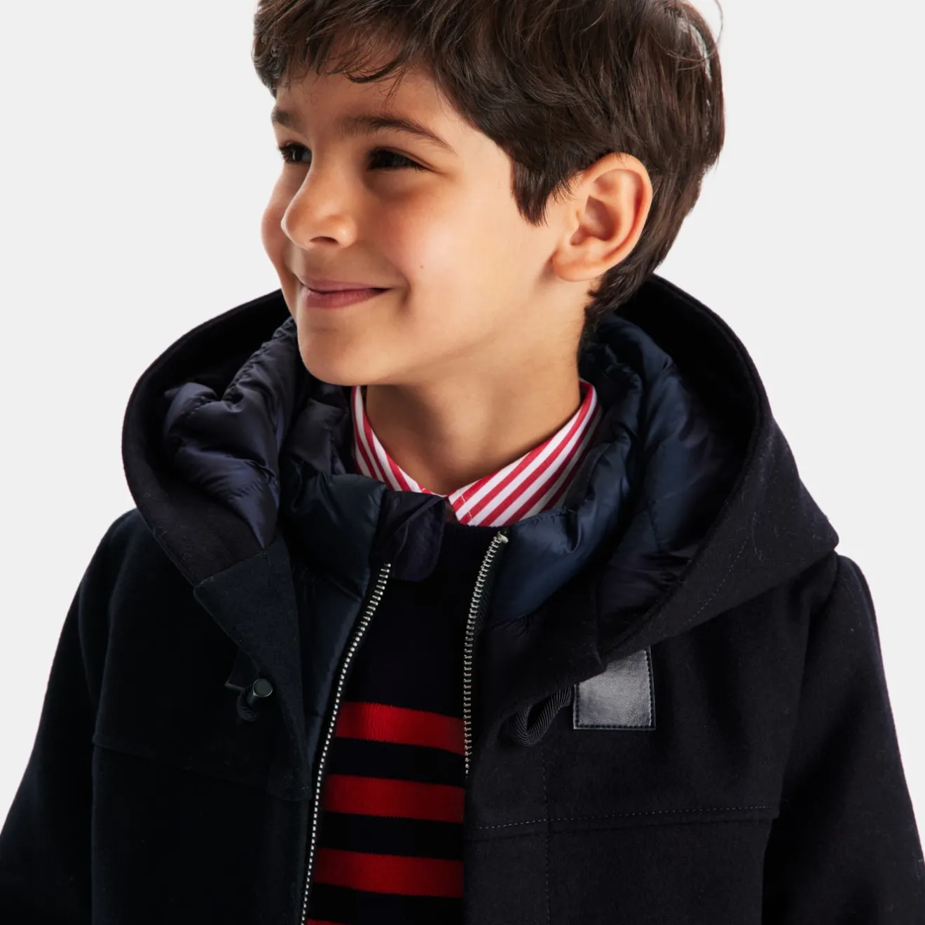 – Duffle-coat garçon en drap de laine italien